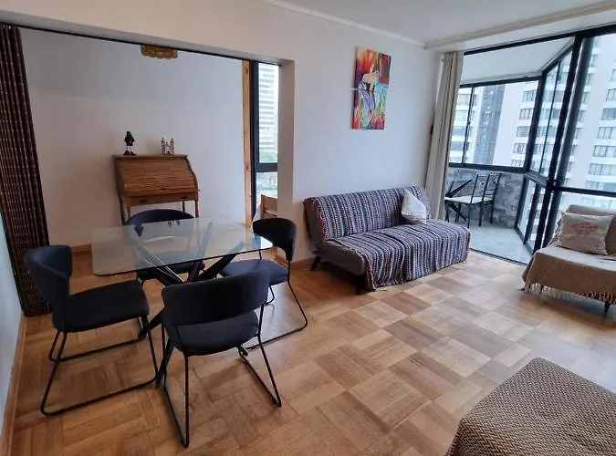 Staying at the spacious Vista Al Mar Departamento - Edificio Acapulco Apartment Vina del Mar, guests can relax on a sunny patio approximately 5 minutes by car from Mirador Esperanza. This apartment offers free private parking nearby and modern comforts like Wi-Fi.
